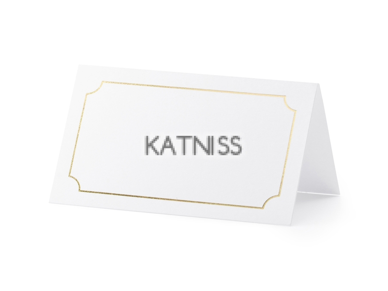 Бели табели за маса със златиста рамка Размер: 9.5/5.5 см Брой: 10 броя