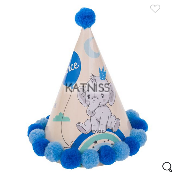 Сини картонени шапки с помпон - слонче